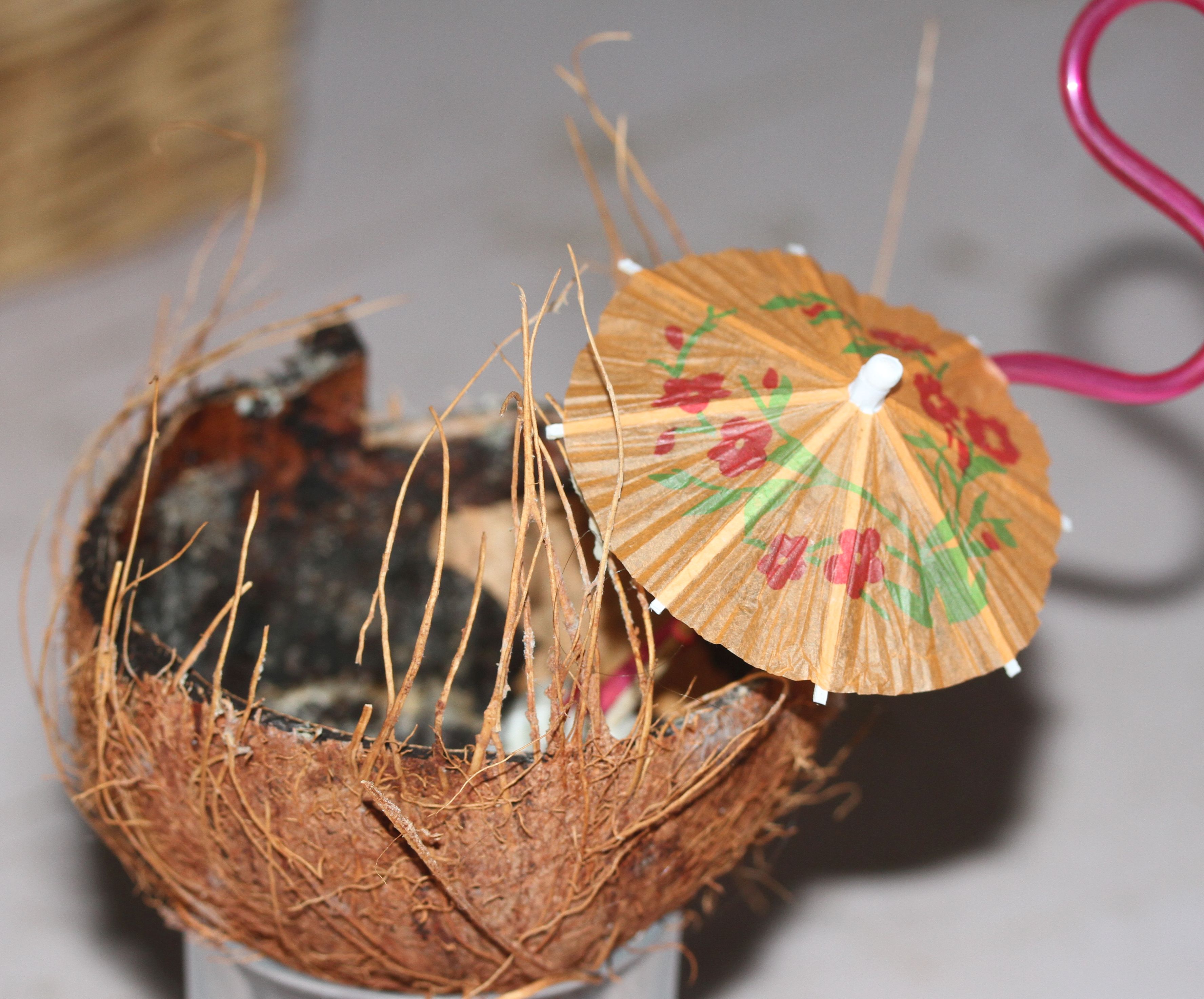 The tissue paper wrapped around the painted coconut shell nicely. I like how the three holes at the bottom can be distinguished.