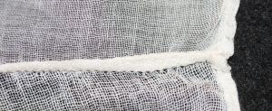 All the seams are machine sewn, with a narrow (3-4mm) enclosed seam; while the hems at the edge are folded twice and hemmed to a narrow edge (3-4mm), a handkerchief seam.