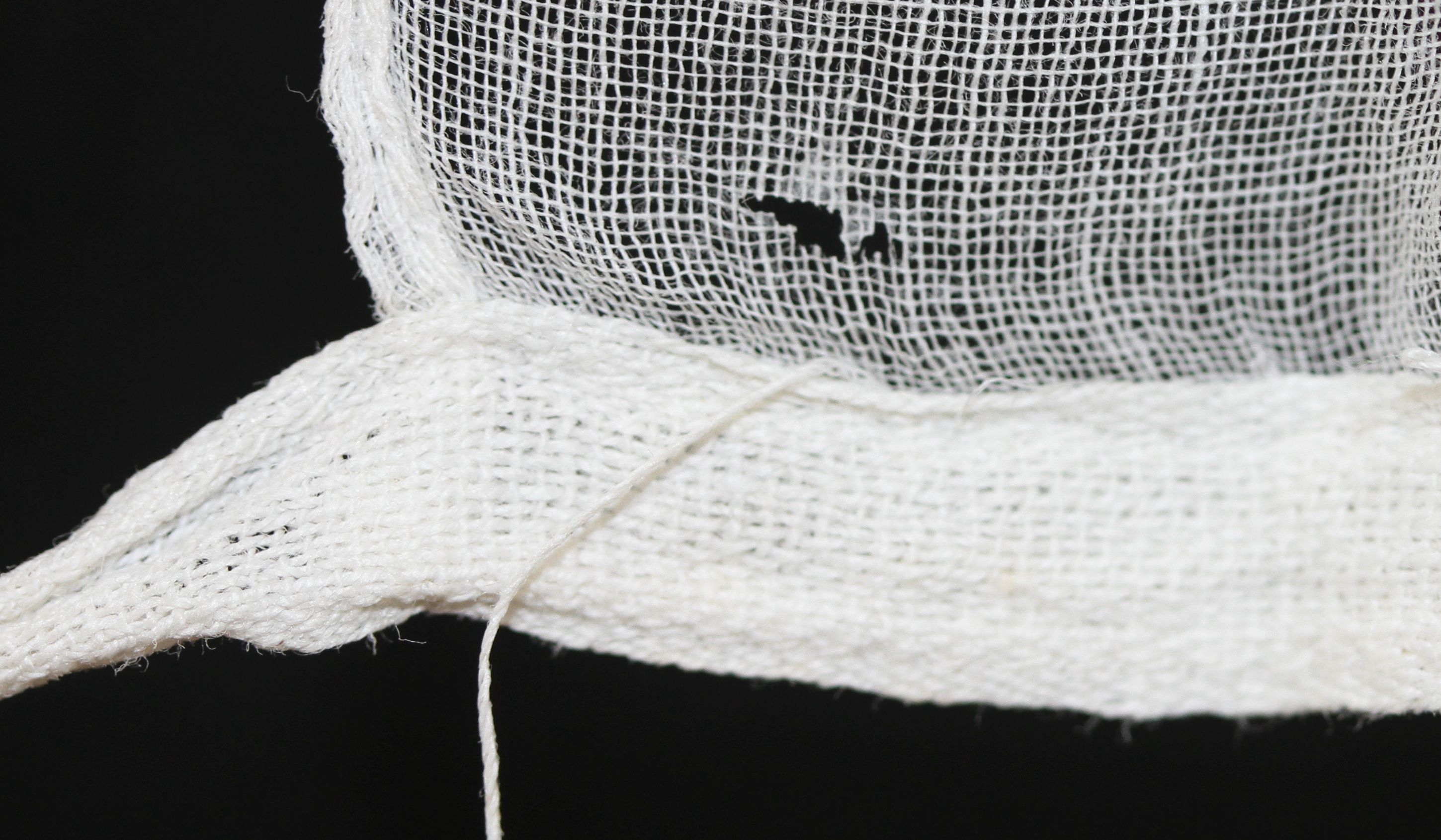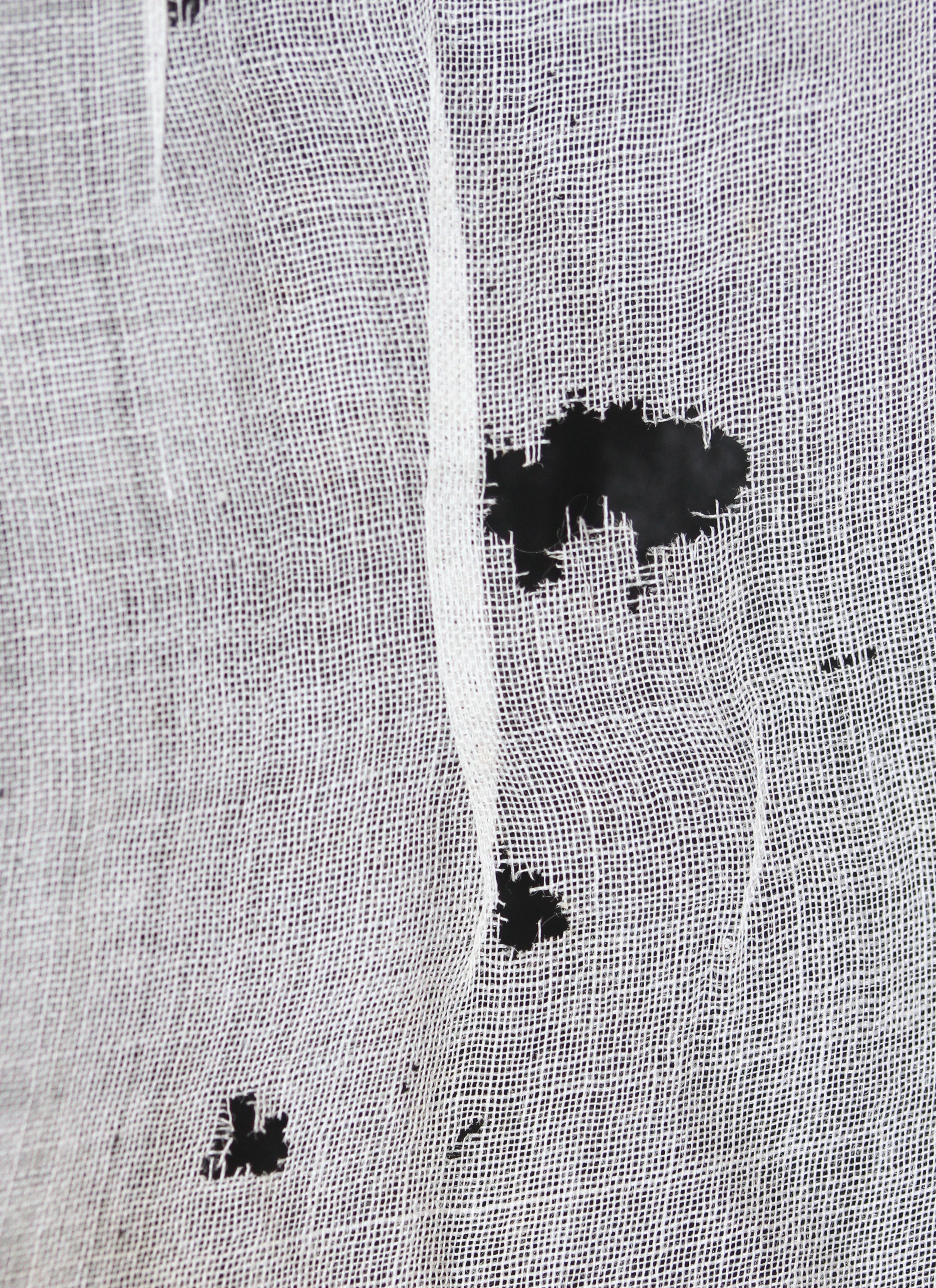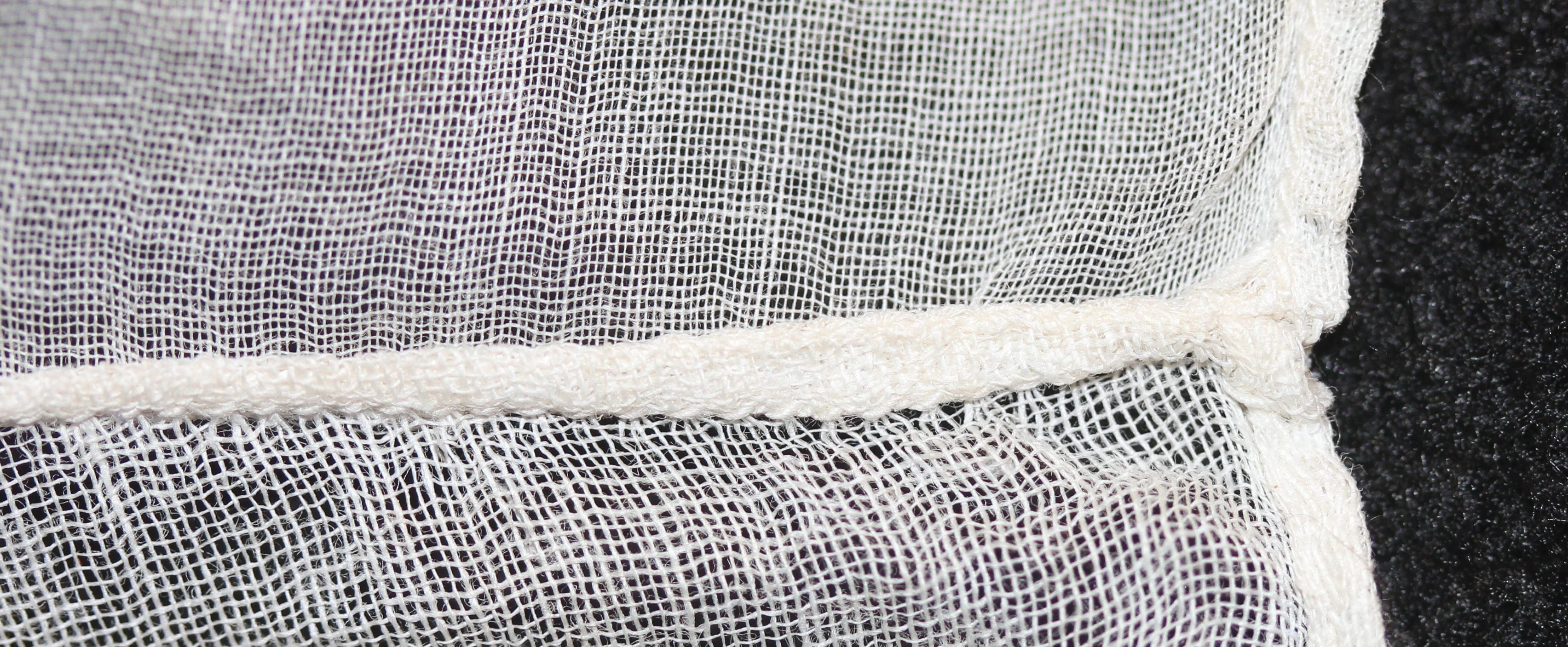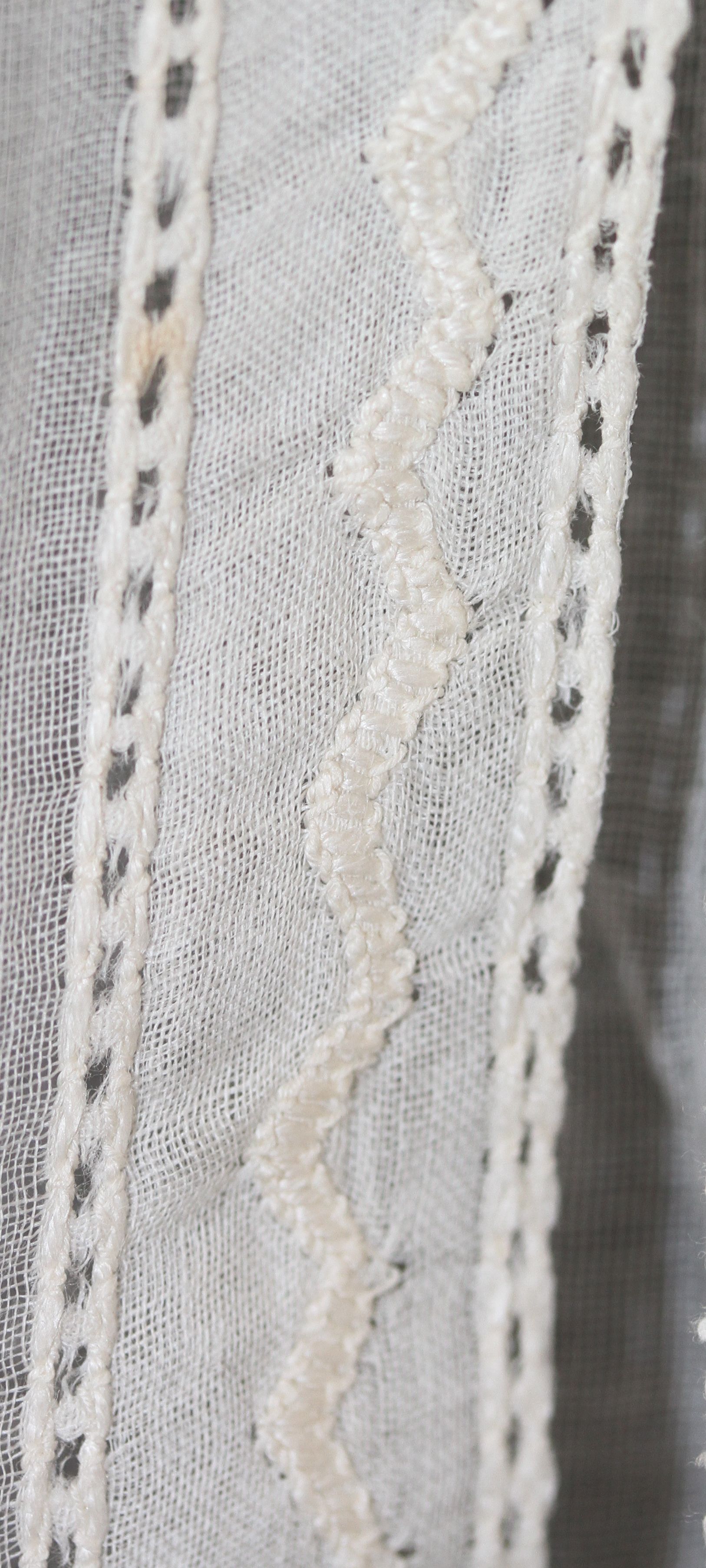 The body of the collar is either a cotton or linen voile, with a very fine, open weave that renders it semi-transparent.