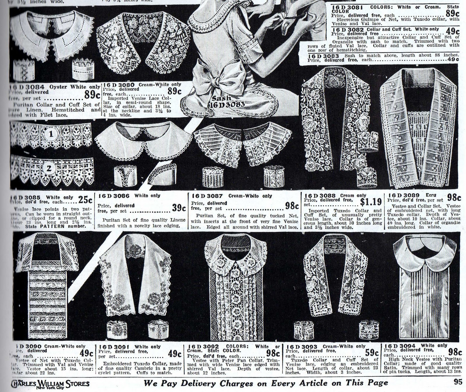RubyLane.com (1920s), ANTIQUE French Lace Collar and Cuffs,