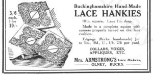 Dorothy, her sisters and mother were all extremely competent sewers (there are many hand-made gifts in Dorothy’s collection, attributed to her sisters and mother), so it is highly probable that it was made by Dorothy or a family member, but this cannot be said with certainty. Patterns for bobbin lace and point lace were widely available in in the 1920s, in magazines like Modern Priscilla (The Priscilla Company, 1920).