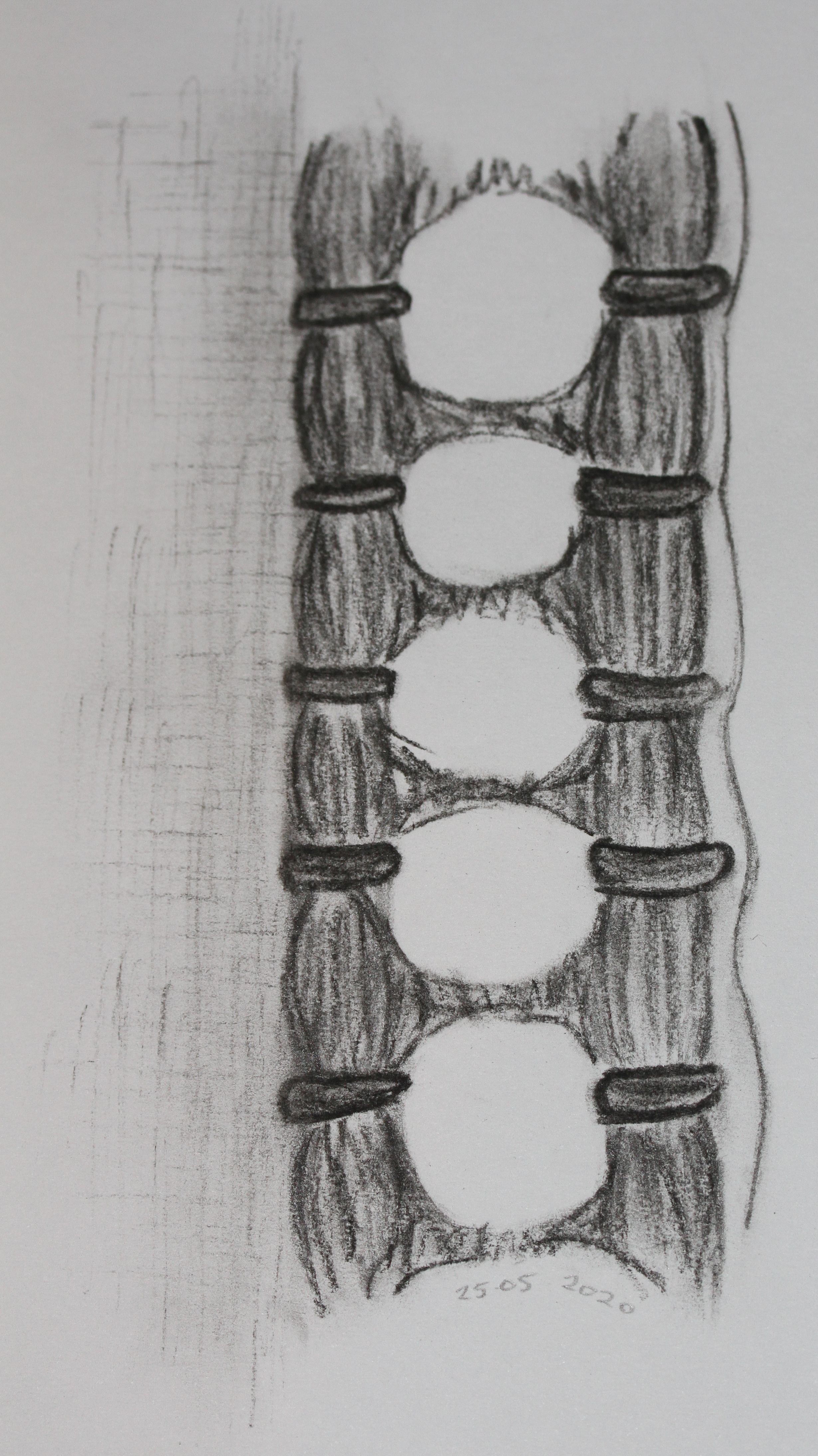 In each case, I’ve started with a drawing of the overall morphology of the item. The quote from our workbook from Frederick Frank, “I learned that what I have not drawn, I have not seen” really rang true as I did these detailed studies, sometimes taking days to complete them.