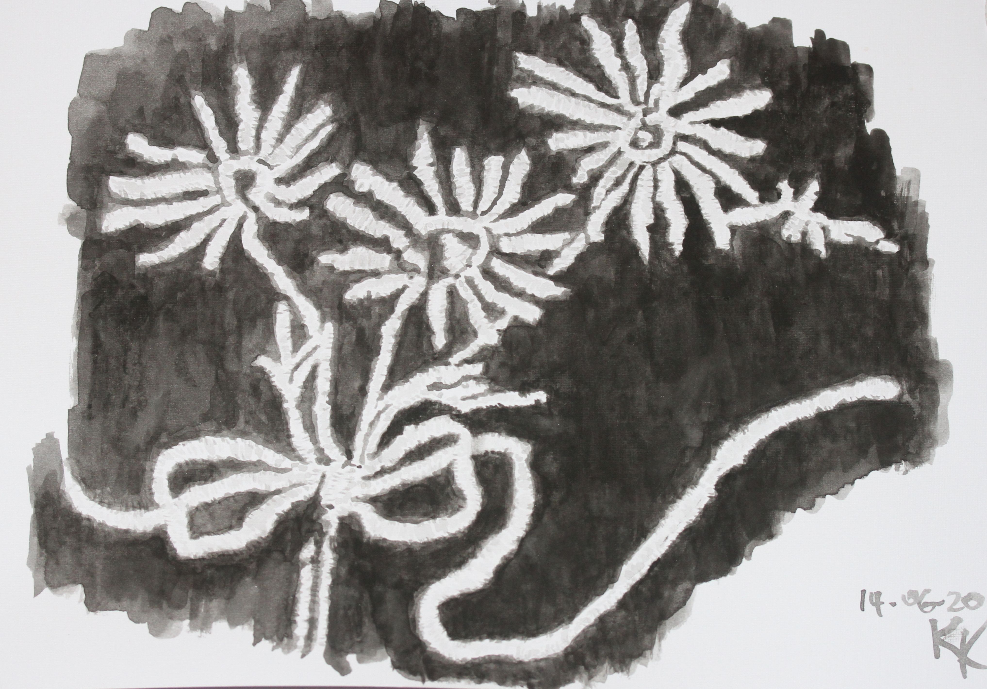 I like that the subtlety of the sumi ink was able to capture the drape and delicacy of the handkerchief by allowing me to shade.