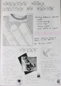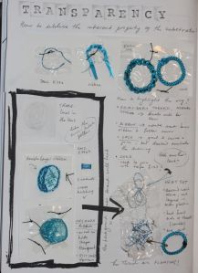 “Your sketchbook is a record of inspiration and experiments. It is like a view into your creative mind which shows what you are looking at and how you are responding to it. This includes colour, texture, proportion, techniques, others artists and designers, drawings, painted sketches, material samples, internet downloads, book and magazine cuttings……anything which is inspiring you and moving you forward. You should be adding to, and referring to, this book throughout a project.”