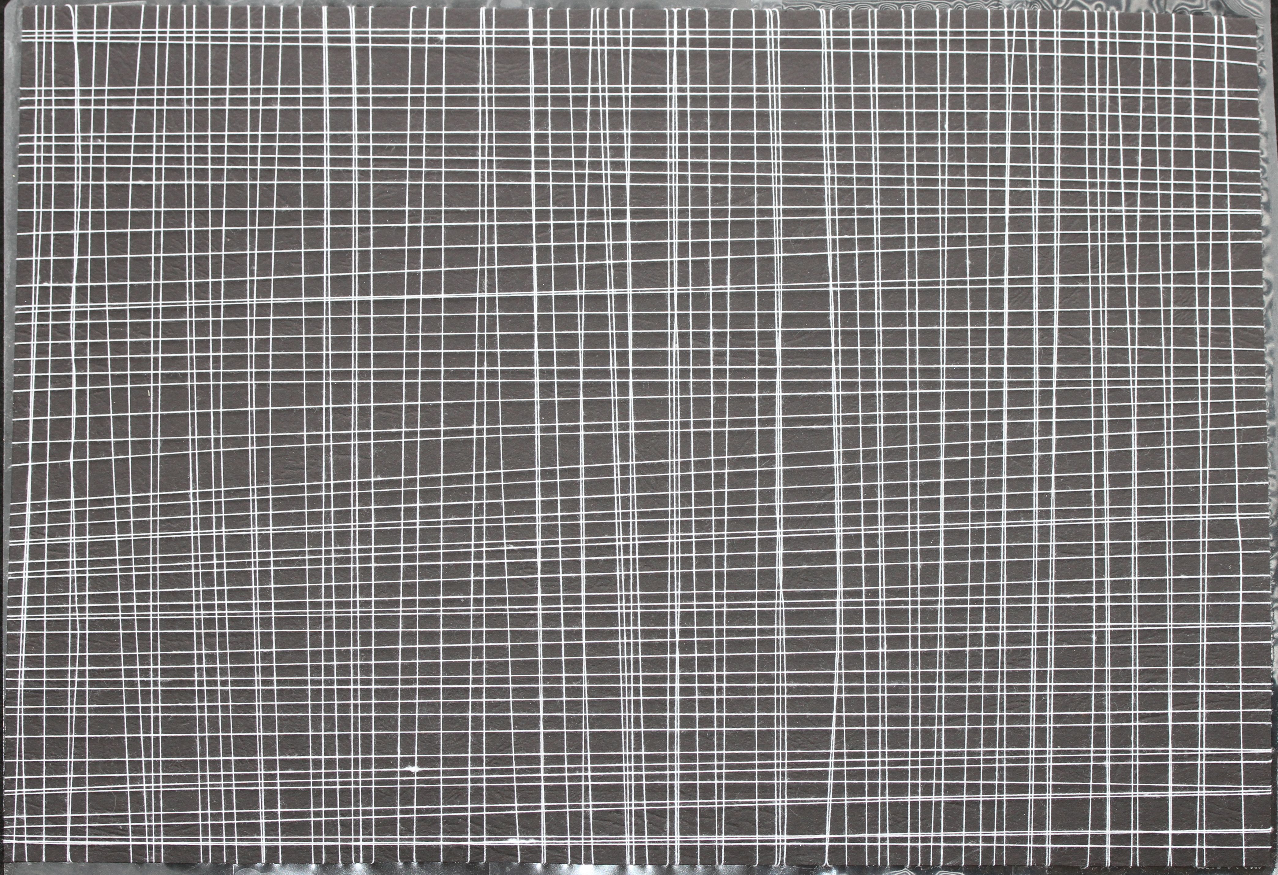 The main idea I pursued for this substrate was that some papers give a white mark when folded, to emulate the white check in the background of this drawing. After trialing several alternatives, I settled on tracing paper.