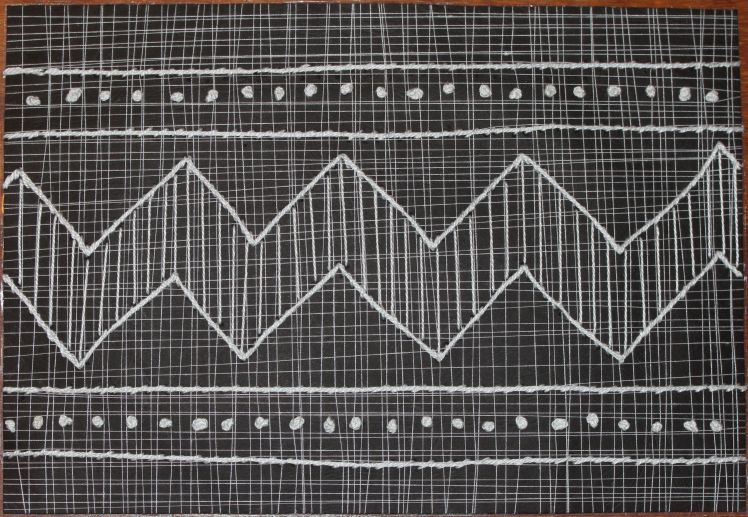 The result flounders, not capturing the quirky lines of the lino print; it seems too ordered, because I have made the lines within the zig-zag parallel.