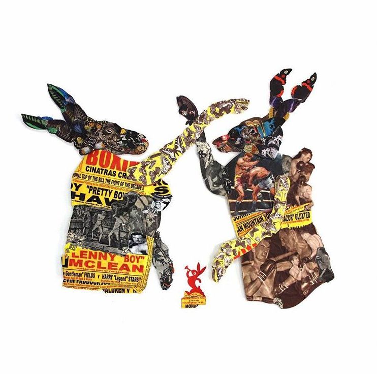 Here the boxing rabbits are made of boxing men, with a tiny cut-out referee: