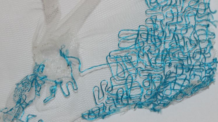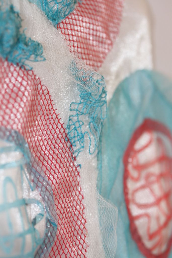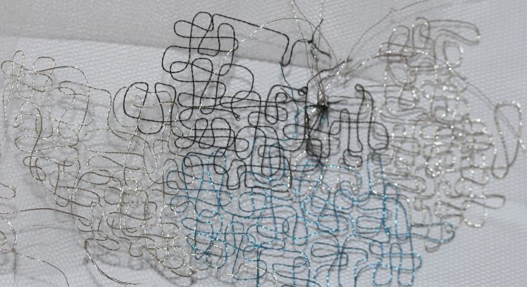 I am extremely pleased with the outcome! It fulfilled my intention of being inspired by my plastic stitched sample, while meeting my remit to maintain a sense of transparency, even fragility, and floating thread work. The three dimensionality of the piece was superior to what I expected to achieve.