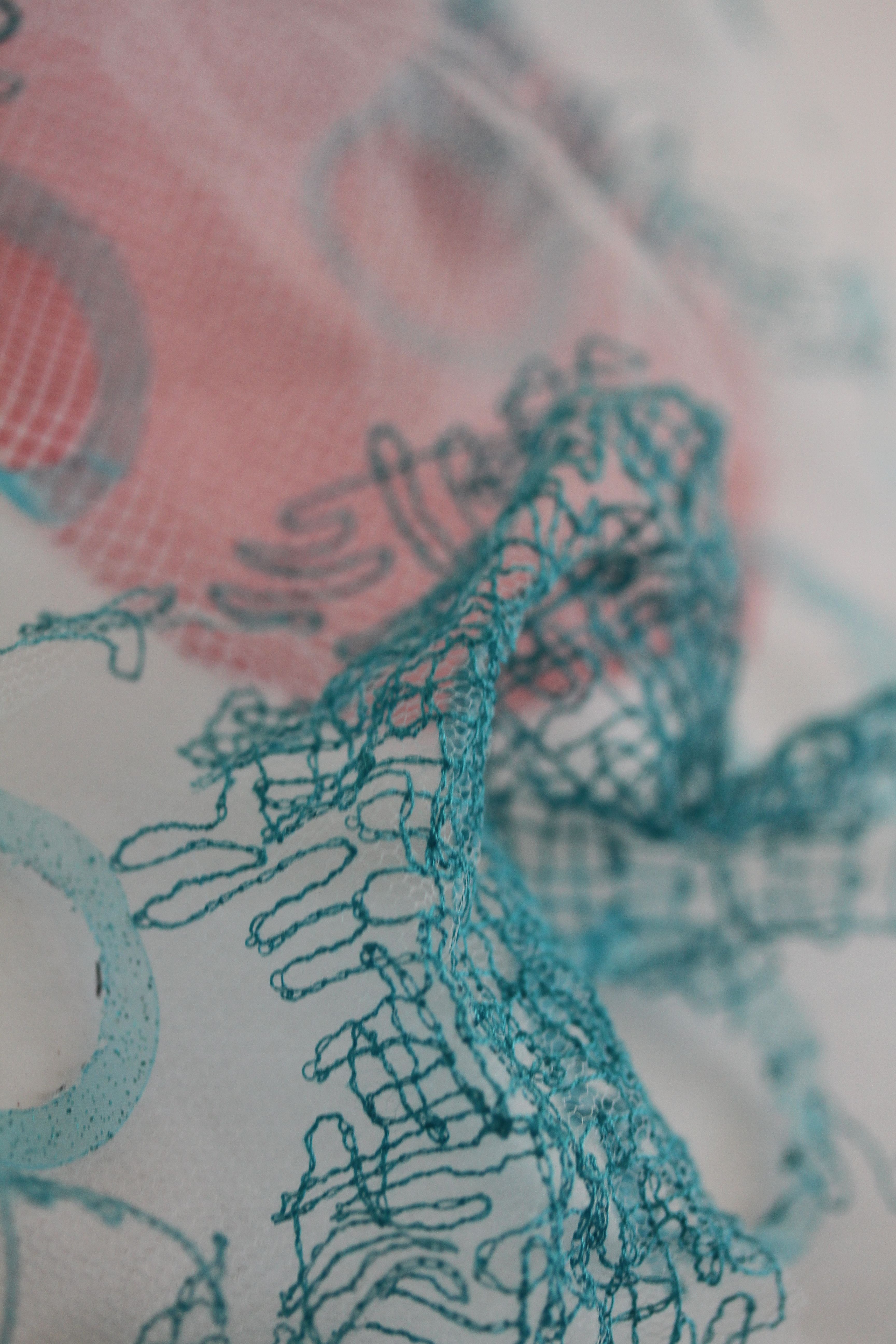 In Piece #2, I set out to explore scale and repetition, while continuing with my remit of transparency and ‘floating’ stitch.